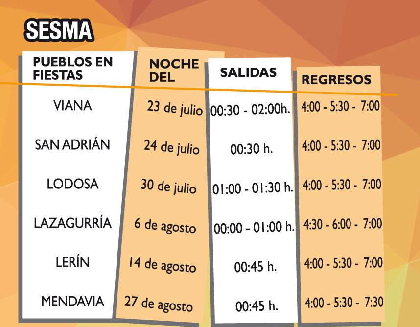 Un año más, se ha puesto en marcha una nueva edición del servicio de autobús nocturno "Voy y vengo", cuyo fin es prevenir accidentes de tráfico entre jóvenes que se desplazan a las fiestas de las localidades cercanas a Sesma.