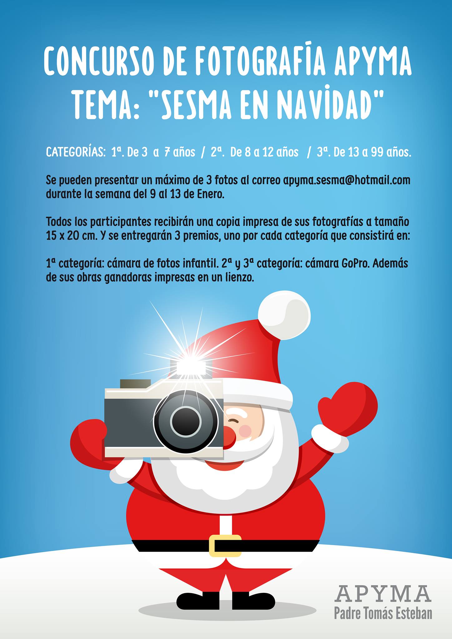 Las fotografías se enviarán al correo : apyma.sesma@hotmail.com, con el nombre del asunto "Concurso APYMA Sesma". En el correo se especificará la categoría en la que participa y figurará un teléfono de contacto.