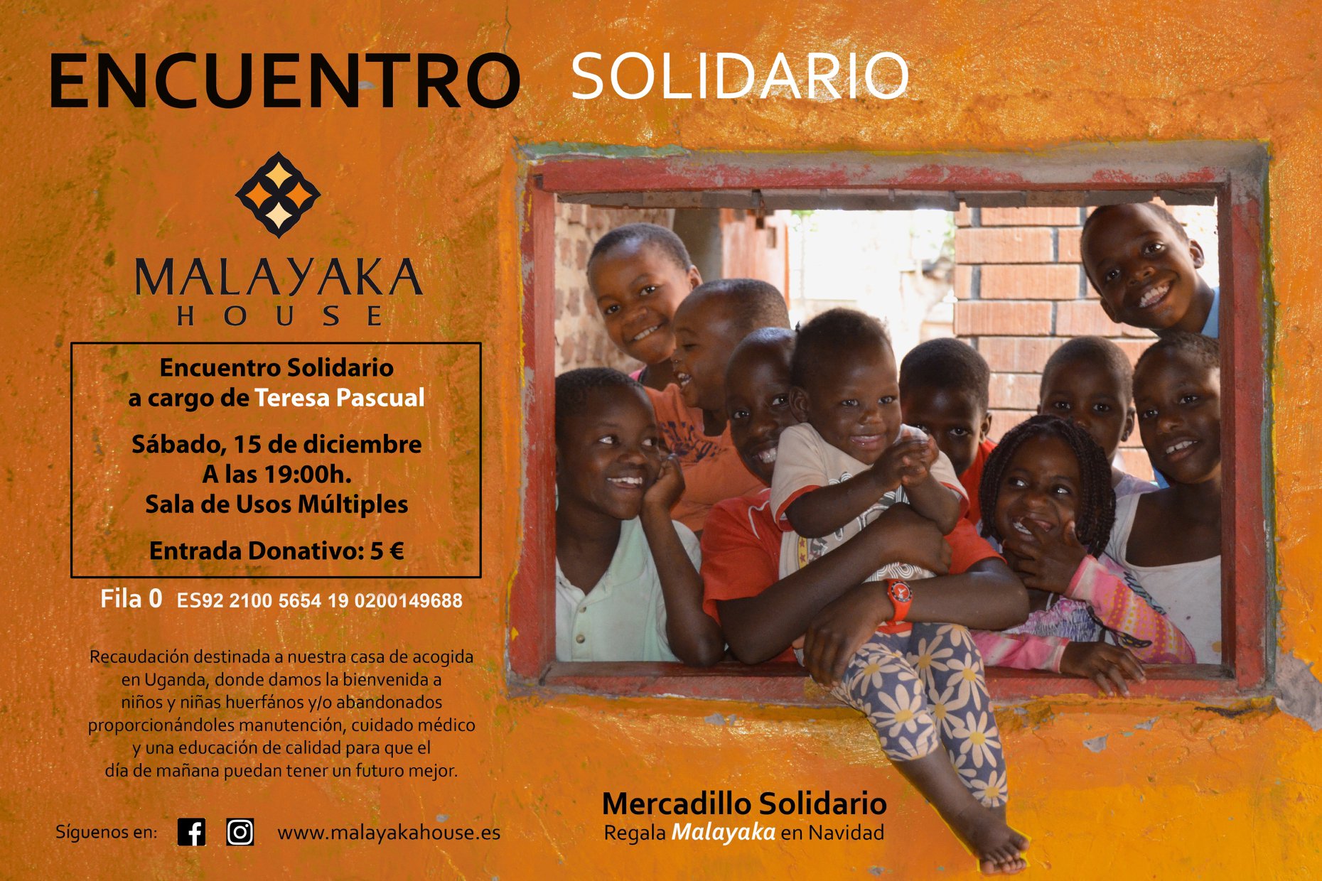 La sesmera Teresa Pascual Andrés ha estado de voluntaria en Uganda, en un orfanato llamado "Malayaka House". Teresa nos contará su experiencia en primera persona y tendremos un mercadillo solidario con artesanías para que podáis hacer vuestras compras navideñas.