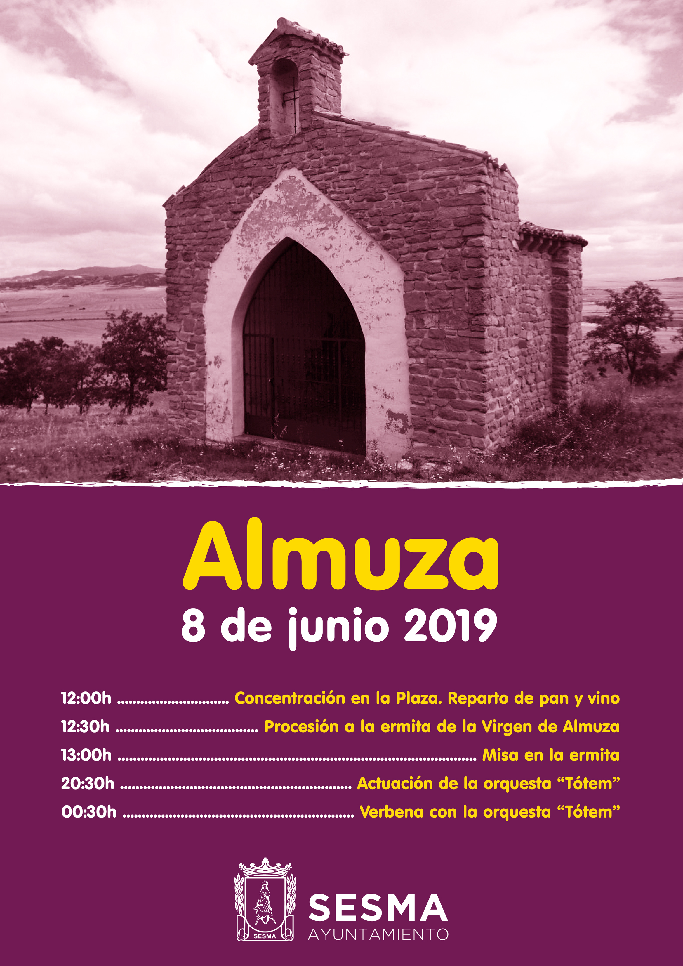 A las 12:30h, comenzará la procesión a la ermita de la Virgen de Almuza. A continuación, celebración de la misa.