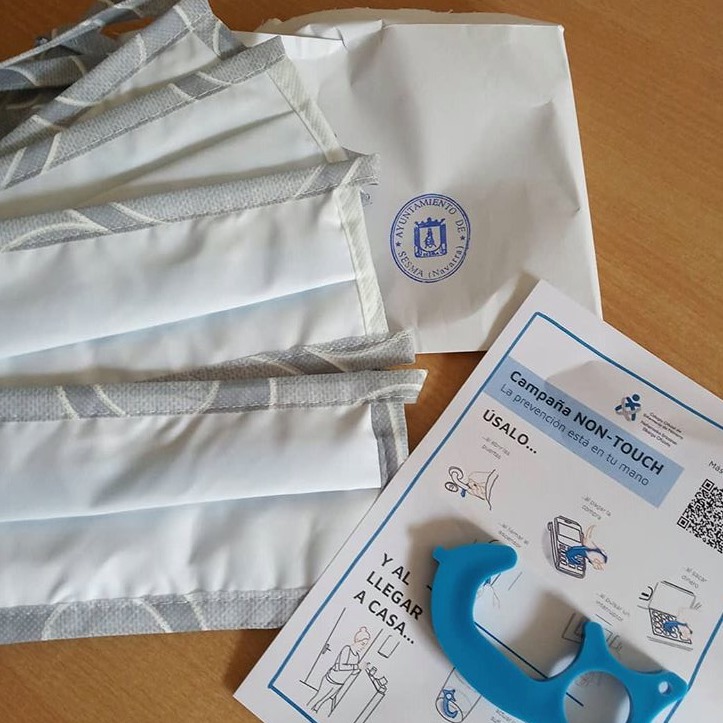 El Ayuntamiento de Sesma reparte mascarillas y dispositivos "Non-Touch" entre todos sus vecinos y vecinas. El sistema de reparto de este material es el buzoneo.